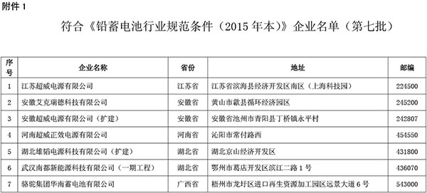 工信部發(fā)布符合《鉛蓄電池行業(yè)規(guī)范條件(2015年本)》企業(yè)名單