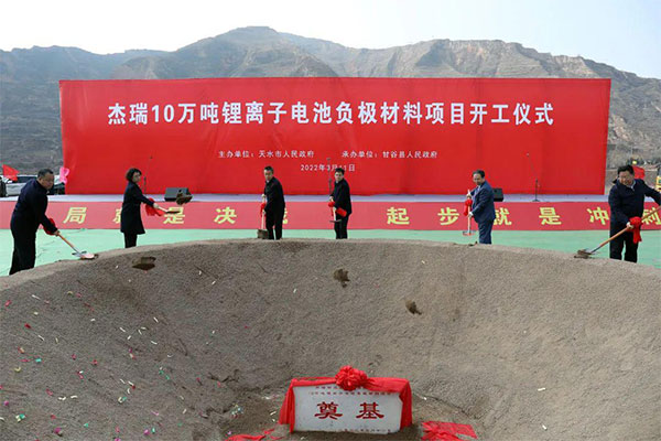 3月11日,杰瑞新能源科技有限公司在甘肅省天水市甘谷縣舉行年產(chǎn)10萬(wàn)噸鋰離子電池負(fù)極材料項(xiàng)目開(kāi)工儀式。該項(xiàng)目是杰瑞布局的鋰離子電池負(fù)極材料一體化戰(zhàn)略基地,也是杰瑞完善油氣和新能源雙主業(yè)戰(zhàn)略布局的重要舉措,項(xiàng)目的正式開(kāi)工標(biāo)志著杰瑞在新能源賽道上加速起跑。