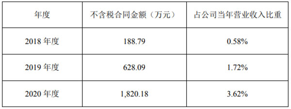 根據(jù)公告,先惠技術(shù)與寧德時(shí)代及其控股子公司最近三個(gè)會(huì)計(jì)年度的交易往來情況:2018年度不含稅合同金額188.79萬元,占公司當(dāng)年?duì)I業(yè)收入比重0.58%;2019年度不含稅合同金額628.09萬元,占公司當(dāng)年?duì)I業(yè)收入比重1.72%;2020年度不含稅合同金額1,820.18萬元,占公司當(dāng)年?duì)I業(yè)收入比重3.62%。
